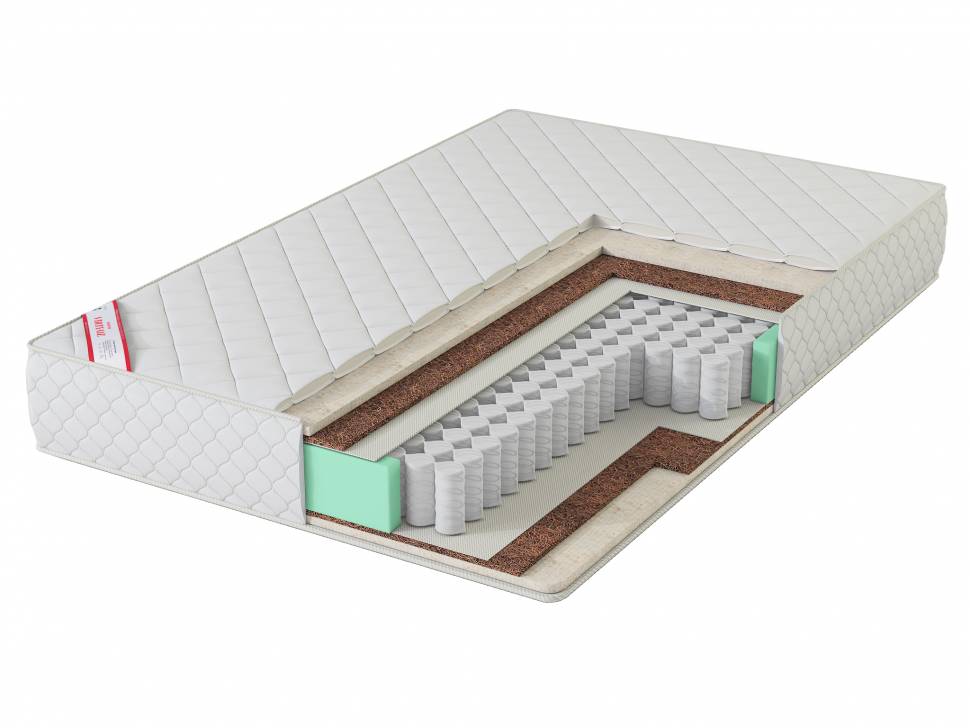 Матрас Рондо двусторонняя модель средней жесткости. Кокосовое волокно равномерно распределяет нагрузку на пружинный блок и придает дополнительную жесткость и упругость матрацу, а высокоэластичный пенополиуретан — натуралформ (ППУ) способствует приятным ощущениям комфорта.
