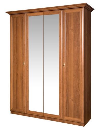 Внутреннее наполнение шкафа: левая секция - 4 полки для белья, правая секция - антресоль + штанга для одежды.