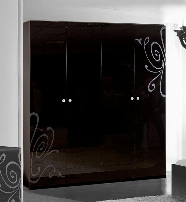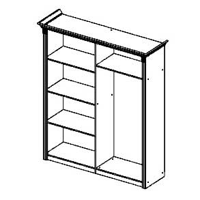 Внутреннее наполнение шкафа: левая секция - 4 полки для белья, правая секция - антресоль+штанга для одежды.