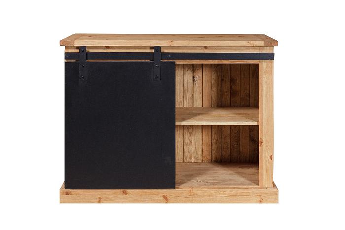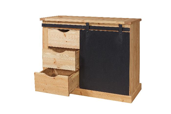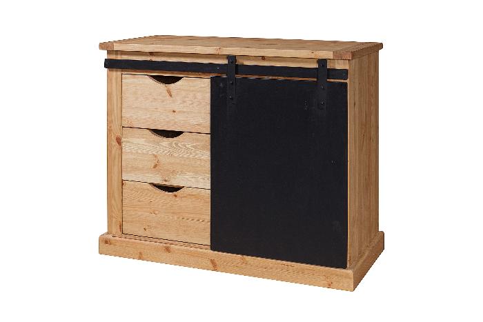 Шкаф ROLLER выполнен из массива сосны. Штанга над дверкой металлическая. Движение дверок по штанге осуществляется на роликах. Дверки установлены на механизме "Купе", ящики на деревянных полозьях. Темные дверки - нанесён чёрный, матовый лак. Задние стенки и донышки ящичков - наборная вагонка, сосна.