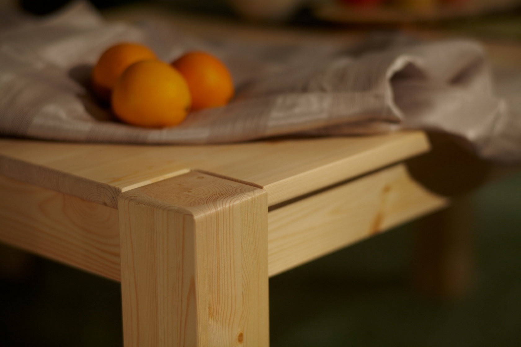 Обеденный стол из натурального дерева на массивных ножках. Подойдет и для кухни, и для дачи. Такая модель из массива сосны согреет вас своей теплотой и поможет создать уютную атмосферу в доме. Кроме того, дерево является экологически чистым материалом.