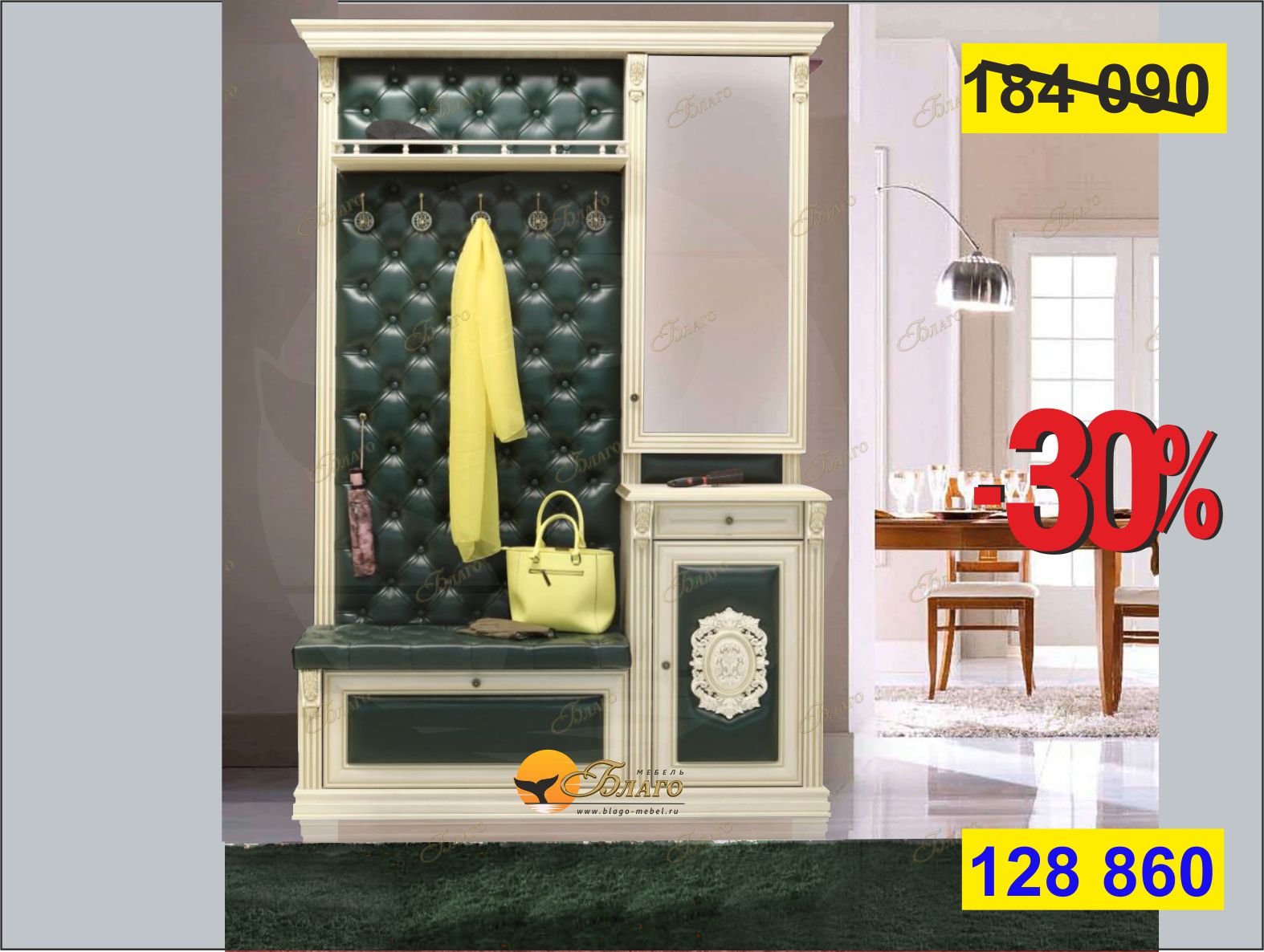 Прихожая Б5.11-13 (с декором) Карамель/Изумруд/Патина золото