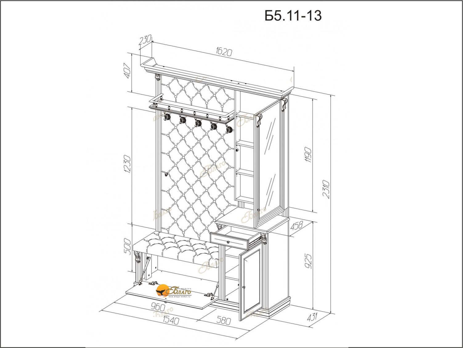 Размер:Ш1630хГ458хВ2310