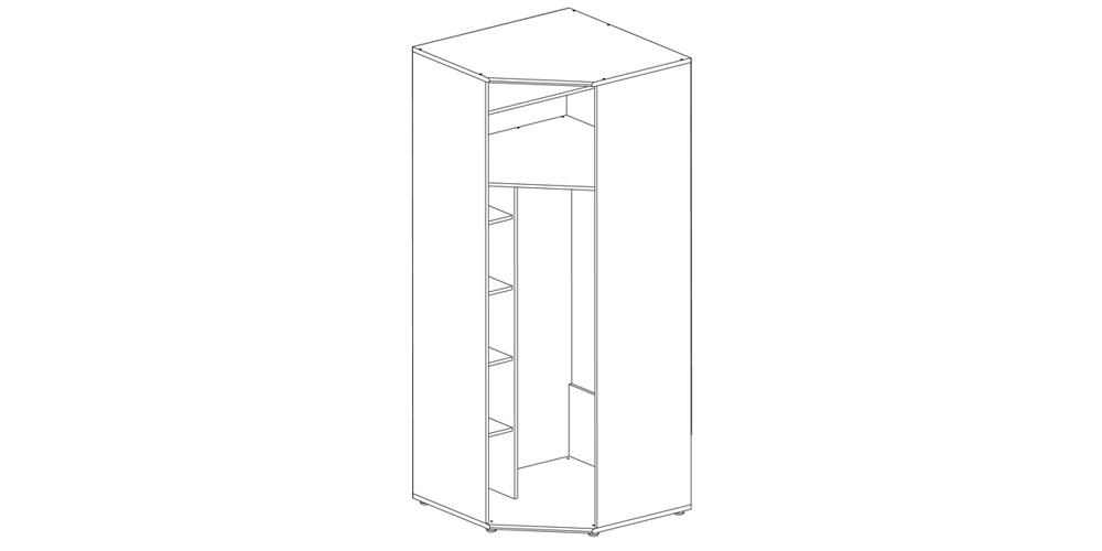Ширина бока: 574 мм. Внутреннее наполнение: верхняя большая полка + штанга для вешалок + четыре полки.