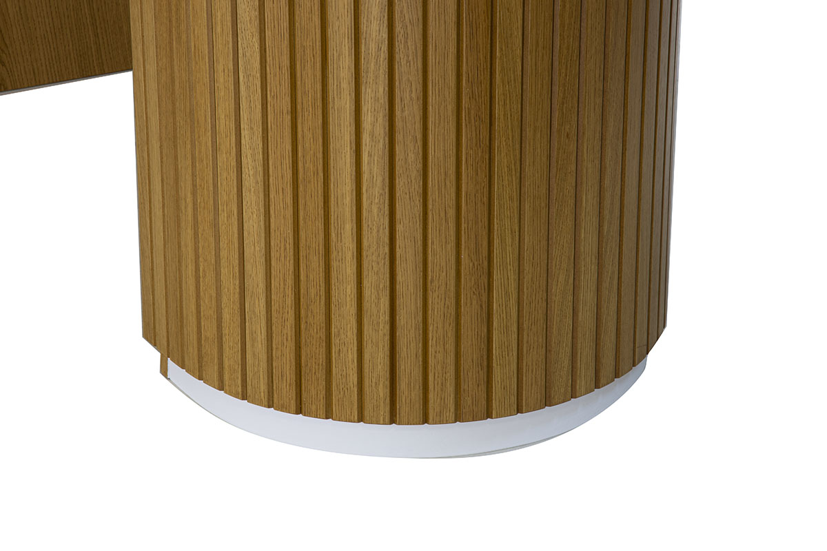 Столешница может быть выполнена из австрийского 23 мм МДФ , покрытого 0,4-0,6мм шпона дуба, или гладкого МДФ под эмаль, на выбор.