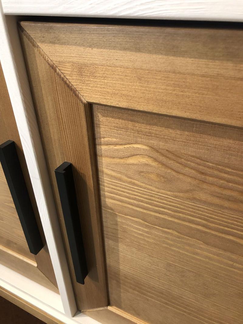 Корпуса, фасады и полки изготавливаются из массива сосны, задние стенки и днища ящиков из ДВП.