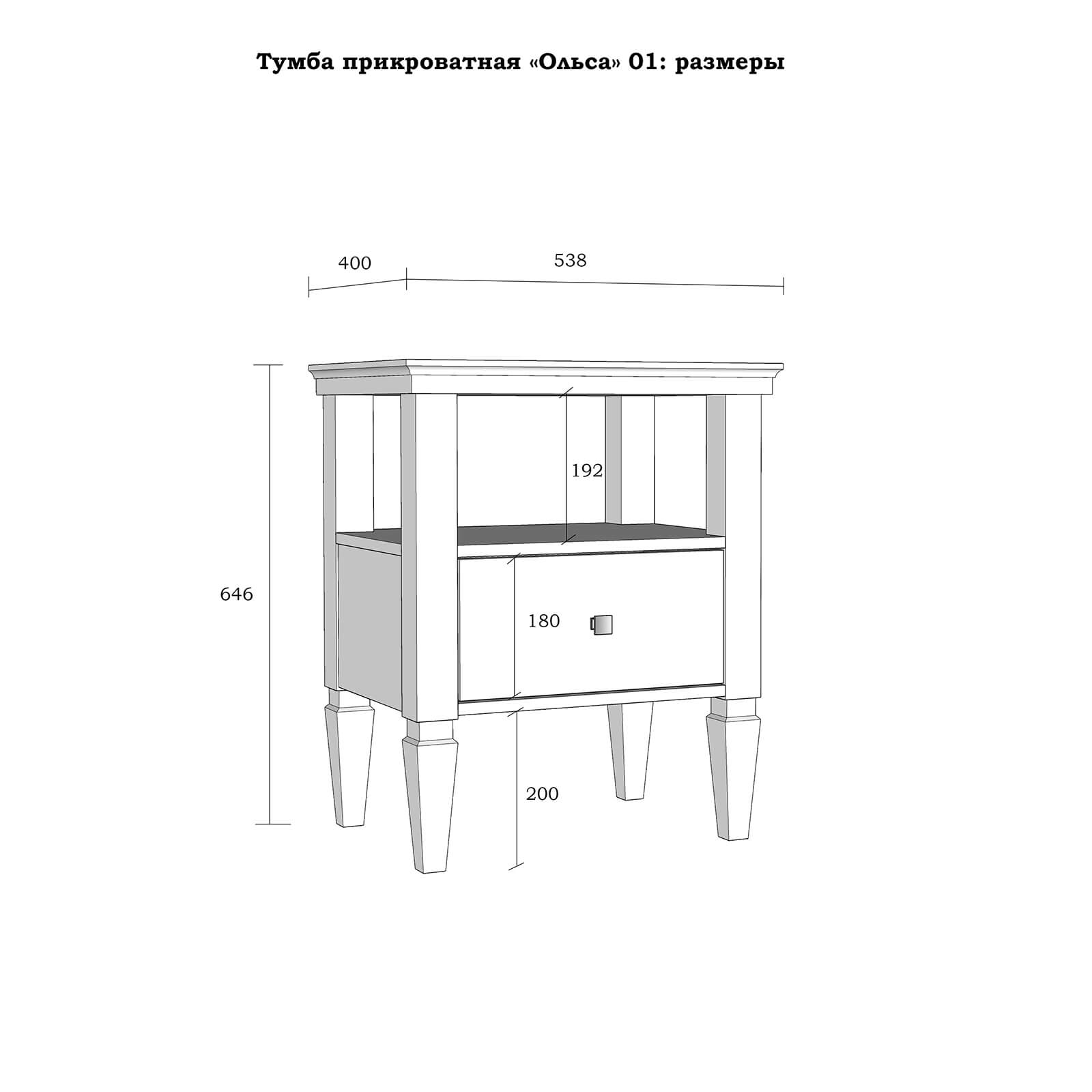 -Габариты тумбы "Ольса" 01: 538 х 646 х 400 (мм);