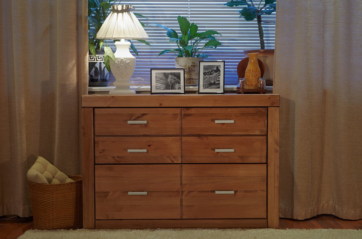Комод с шестью ящиками для тех, кто ценит практичность и естественность. Изготовлен из натурального дерева, что придает пространству теплоту и уют. Кроме того, благодаря вместительности модели вы можете создать в интерьере организованный порядок. Материал – массив сосны, отличается экологичностью и долговечностью.