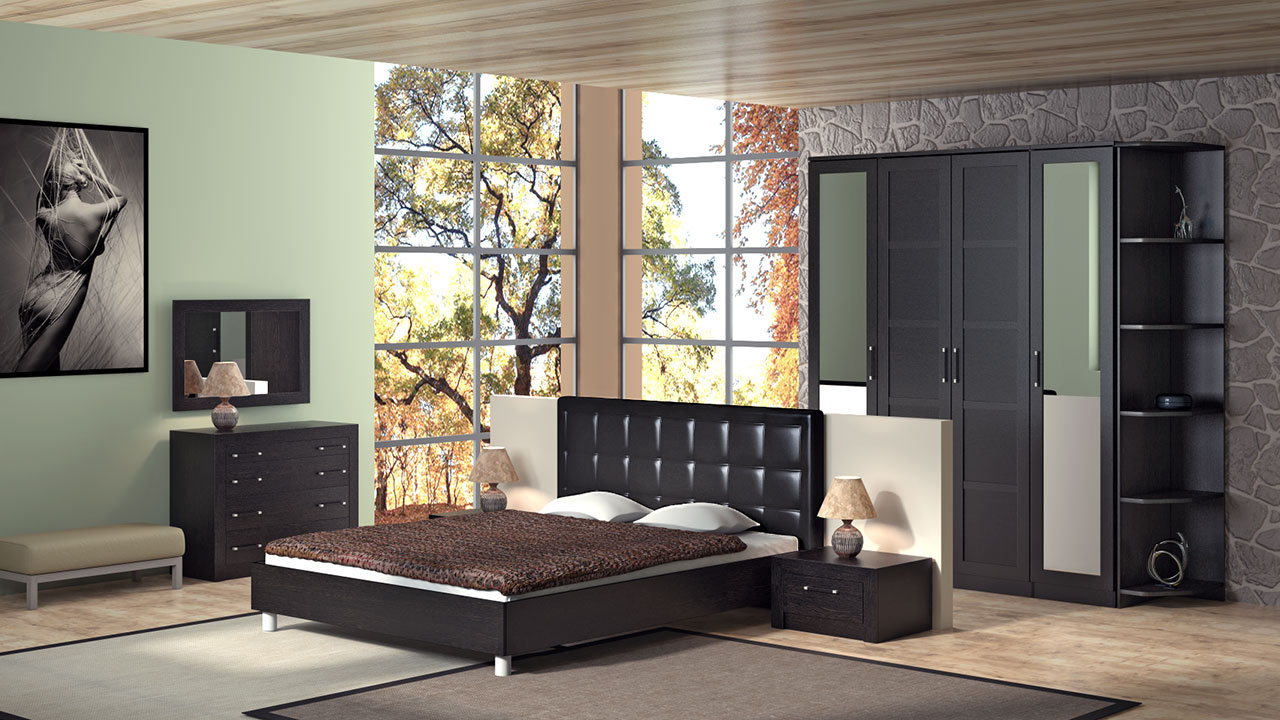 Безупречный стиль и высокая функциональность сочетаются в этом комплекте мебели для спальни. Классическая простота линий придает ему элегантности. Благодаря грамотно подобранным элементам, выполненным в едином дизайне, вы сможете сделать обстановку вашей комнаты уютной и удобной. В комплект входят:Шкаф распашной однодверный с зеркалом, 2 шт. (ВхШхГ): 2302 х 468 х 586 мм;Шкаф распашной двухдверный (ВхШхГ): 2302 х 934 х 586 мм;Стеллаж открытый (ВхШхГ): 2302 х 302 х 586 мм;Комод (ВхШхГ): 792 х 1100 х 458 мм;Зеркало (ВхШ): 600 х 950 мм;Прикроватная тумбочка, 2 шт. (ВхШхГ): 333 х 590 х 548 мм;Кровать со спальным местом 1600х2000 мм (ВхШхГ): 990 х 1738 х 2089 мм. При желании, вы можете дополнить комплект другими элементами из серии. Вся мебель изготовлена из ЛДСП. Обратите внимание, что вам необходимо выбрать вариант комплектации гарнитура: с матрасом или без него. Ознакомиться с предлагаемым матрасом вы можете во вкладке «Аксессуары».
